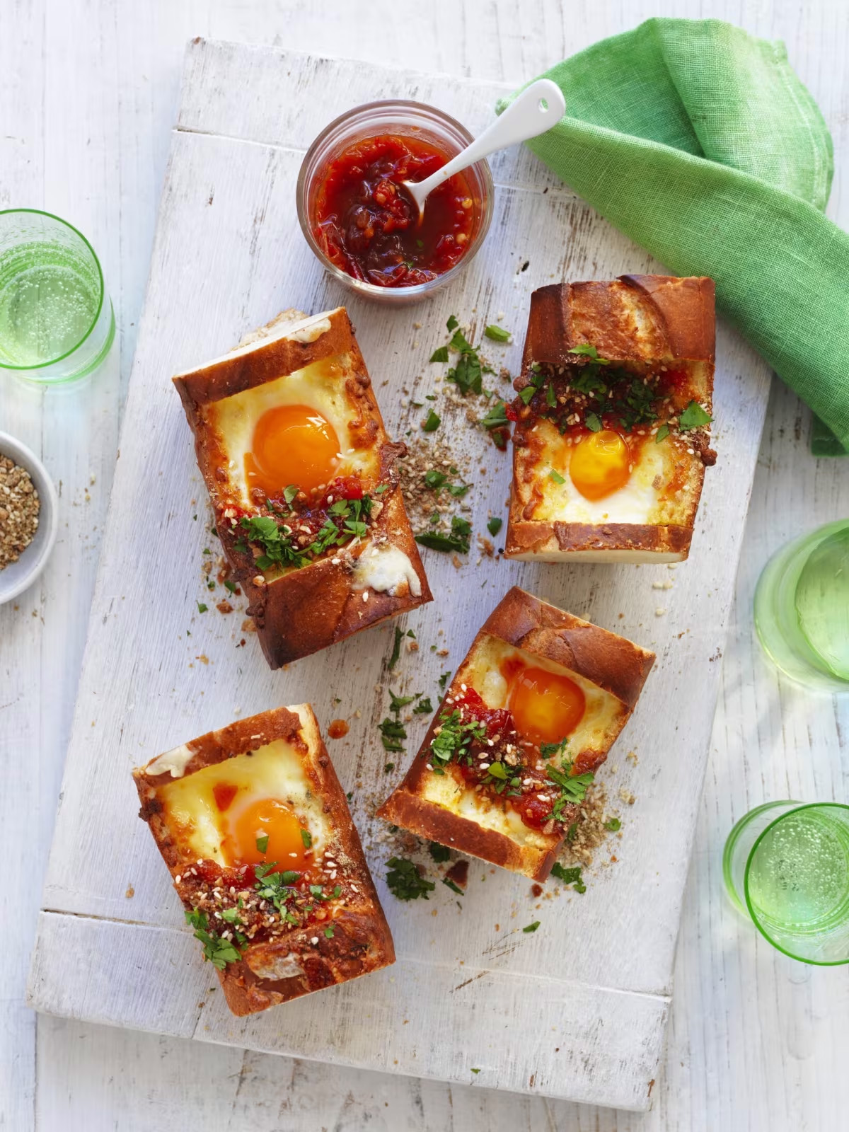 This simple, shareable dish features crusty baguette pieces baked to perfection, cradling farm-fresh eggs and a medley of savoury toppings. The result? A delightful combination of crispy, chewy, and creamy textures all in one bite. Infused with herbs and spices, these baked eggs are perfect for brunch gatherings or cosy family breakfasts. Serve them straight from the oven for peak deliciousness.